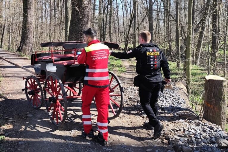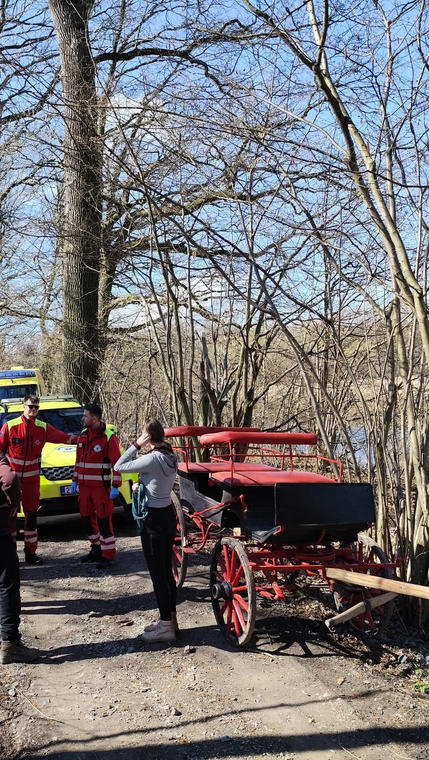 Jednašedesátiletý muž jel po lesní cestě na povozu, který táhl kůň. „Zvíře se splašilo a povoz sjel do příkopy. Přitom došlo k pádu muže, jenž zůstal po nehodě několik minut v bezvědomí. Se záchranáři již později komunikoval, jevil však příznaky svědčící pro otřes mozku,“ sdělil mluvčí záchranky Lukáš Humpl.