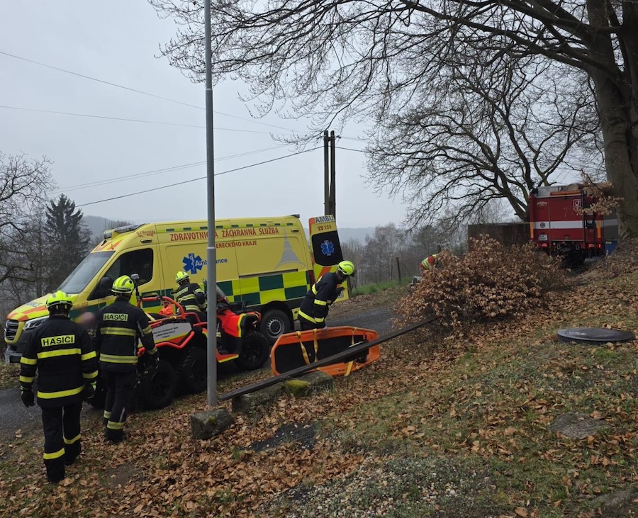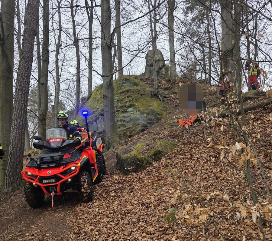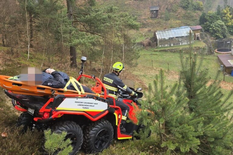 Zraněný turista s úrazem dolní končetiny potřeboval pomoc záchranářů, ti se ale pro muže do kopcovitého terénu nemohli se sanitním vozem dostat. „O bezpečný a poměrně rychlý transport zraněného výletníka až k vozu ZZS LK se během několika minut postarali turnovští hasiči s šestikolkou,“ dodala Benešová.