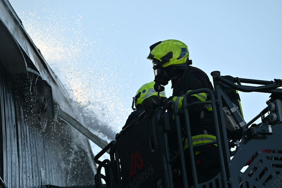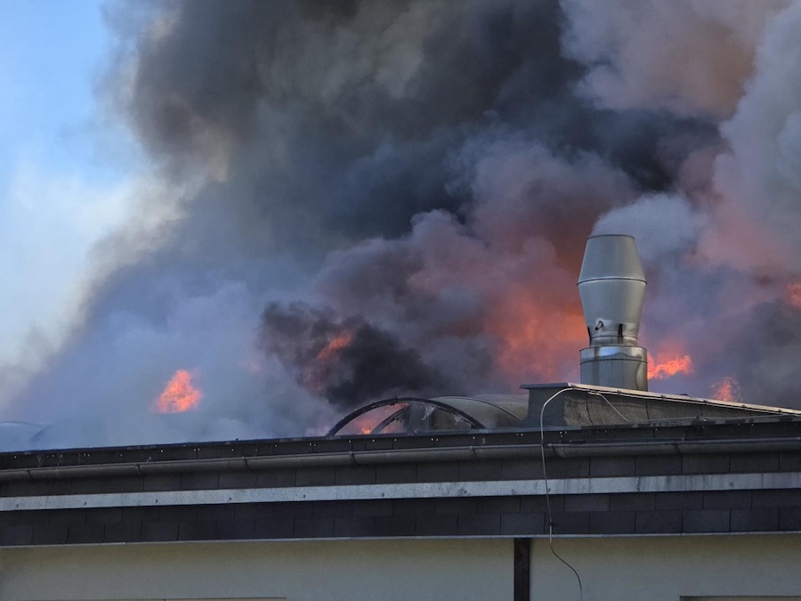 Požárem byla v tu chvíli zasažena část střechy haly. Pár minut před půl pátou byl vyhlášen druhý stupeň požárního poplachu, zhruba o půl hodiny později byl zvýšen na třetí stupeň požárního poplachu.