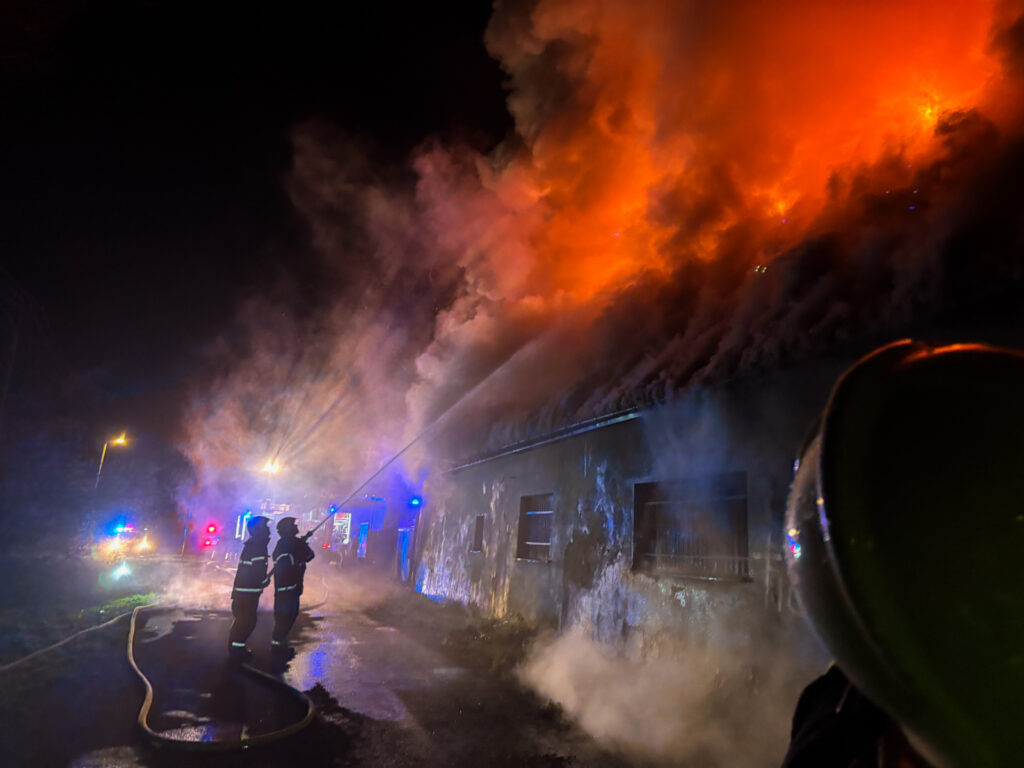 Po příjezdu prvních jednotek hasiči zjistili, že hospodářská budova o rozměrech přibližně 15 x 10 metrů je požárem zcela zasažena. Požár se následně také rozšířil i na střechu sousední budovy o rozměrech zhruba 25 x 10 metrů. „Hasiči prováděli hasební práce pomocí šesti vodních proudů. Pro zajištění dostatečného množství hasební vody jsme zřídili čerpání ze dvou odběrných míst na řece Moravici. Požár se podařilo lokalizovat za necelých sedm hodin, přičemž hospodářská budovu požár zcela zničil,“ sdělil mluvčí hasičů Petr Andráško.