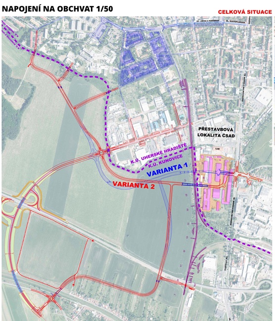 Záměr, původně označovaný jako napojení Průmyslové ulice na silnici I/50, se postupně rozšířil. Podle vedení města dnes jde o strategickou stavbu s dopadem i na sousední Kunovice.