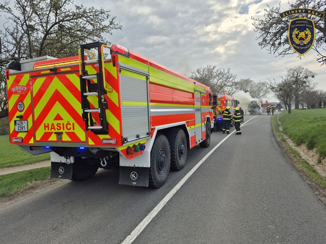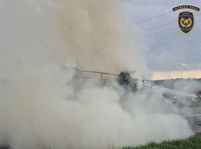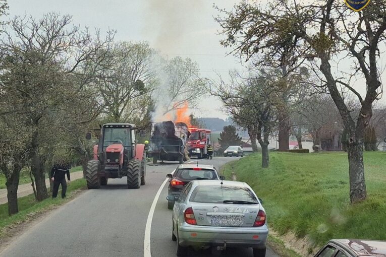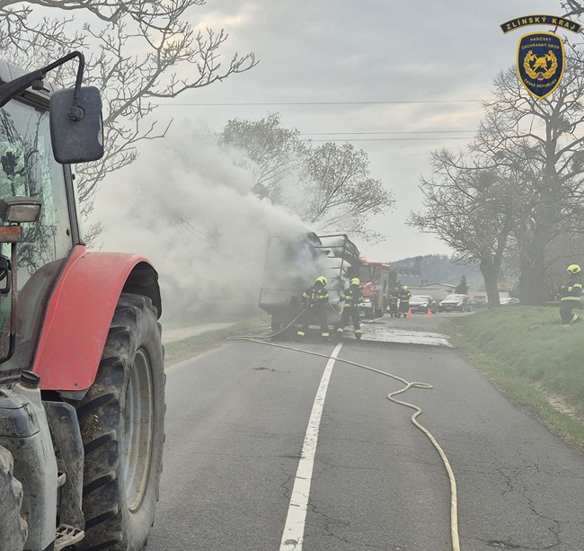 K požáru došlo včera krátce před půl pátou odpoledne. Řidič při zpozorování požáru soupravu odpojil a s traktorem odjel do bezpečné vzdálenosti. Díky tomu zabránil rozšíření požáru na další část techniky.