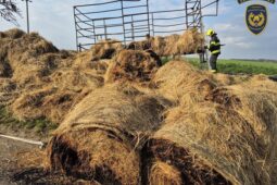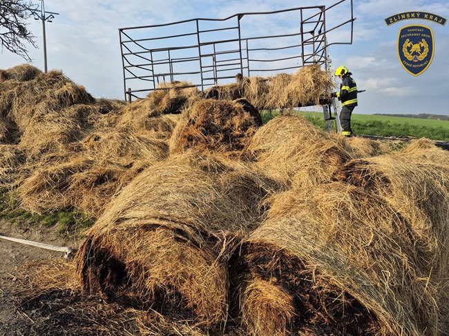 Seno přemístili na volné prostranství, kde ho důkladně prolévali vodou. Po celou dobu zásahu zůstala silnice uzavřená.