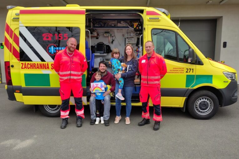„Tohle setkání vyvolala vzpomínka, když se mně před necelým rokem udělalo špatně a potřebovala jsem taky zavolat sanitku. Dcerka tak viděla záchranáře přímo v akci. Sama se mně pak zeptala, proč jsem ale nedostala taky toho pejska Defíka, když ona jo,“ usmívá se paní Tamara, maminka Stázinky. „No a od té doby si přála moc vidět svoje záchranáře, kteří pomohli i jí, a chtěla jim namalovat obrázek, že prý bude jednou taky paní doktorka se sanitkou. Celá naše rodina je moc vděčná, děkujeme.“