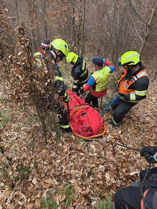Kvůli obtížnému terénu se k zásahu z vrtulníku slanil lékař Letecké záchranné služby. Hasiči pak museli vyčistit transportní trasu v délce několika set metrů, aby bylo možné pacienta bezpečně předat vrtulníku. Ten nemohl na místě přistát, proto byl pacient přeložen do palubních nosítek a spolu s lékařem vytažen navijákem na palubu vrtulníku.