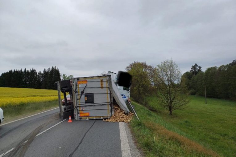 U Temešváru se převrátil kamion plný brambor. Náklad zablokoval silnici
