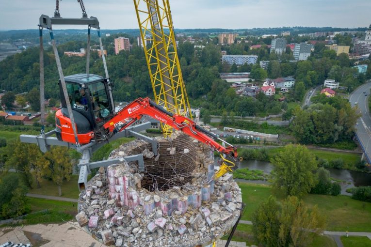 FOTO: Slezanský komín jde k zemi! Výhledu na baziliku už bránit nebude. Bourání odkazuje na sovětskou okupaci