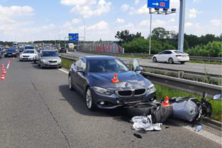 FOTO: Na Rudné se střetl motorkář s autem a utrpěl zranění. Hledají se svědci, kteří poskytovali první pomoc