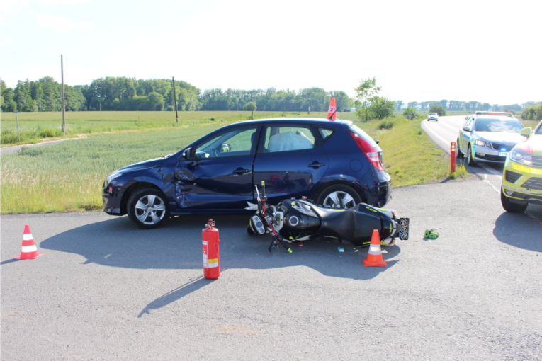 FOTO: V Opavě se při nehodě s autem srazil motorkář. Hledá se svědek v červeném autě