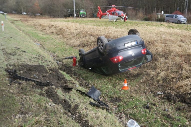 Mladá řidička se lekla auta v protisměru a skončila na střeše. Policisté hledají svědky nehody