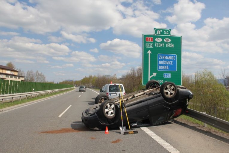 Na D48 se srazila dvě auta, jedno skončilo na střeše. Pomůžete policii?