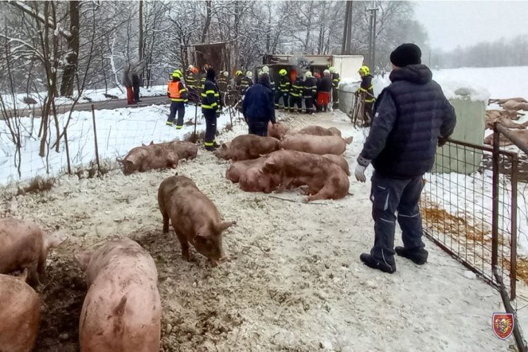 Na Frýdecko-Místecku havaroval kamion se 120 prasaty. Několik jich zemřelo