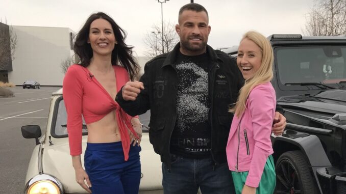 Zápasník Karlos Vémola podlehl sexy moderátorkám primácké autorevue a prásknul na sebe i to, co nechtěl… Ostatně – dokážete si tohoto chlapa jako horu představit v Trabantu?
