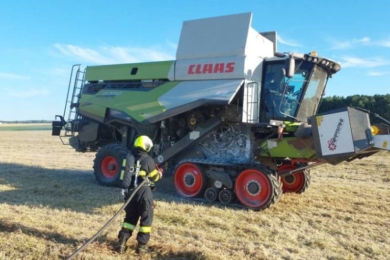 Hasiči likvidovali požár kombajnu na Pardubicku