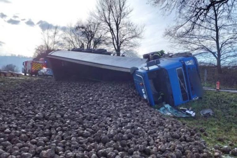 Na silnici u Moravské Třebové se převrátilo nákladní auto