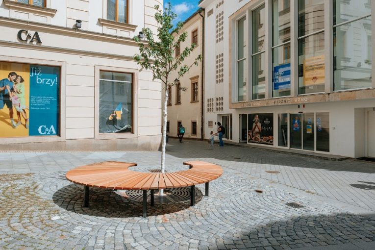 Na Starobrněnské vysadili speciální strom, chrání ho nová lavička