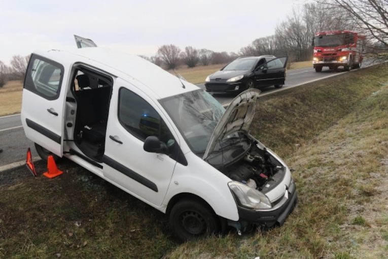 Řidička dostala na namrzlé a zasněžené silnici smyk a narazila do protijedoucího auta