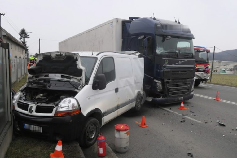 Kamion narazil do porouchané dodávky, dva lidé skončili v nemocnici