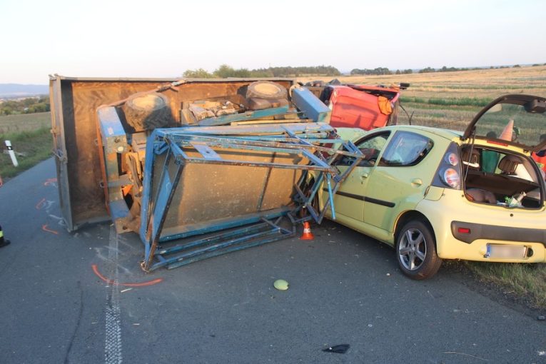 UNIČOVSKO – Nehoda se stala včera navečer na Uničovsku. Dvaapadesátiletý řidič náklaďáku MAN jel nepřiměřeně rychle, vyjel ze zatáčky a dostal smyk. Převrátil se do protisměru na pravý bok a …