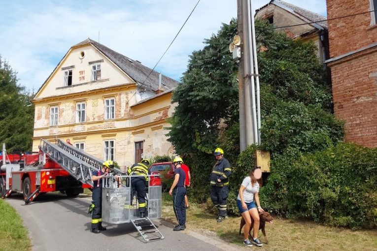 OLOMOUCKO – Psa z římsy na štítové zdi ve výšce asi 10 metrů nad zemí zachránili včera dopoledne hasiči v Troubelicích na Olomoucku. Museli přitom použít automobilový žebřík. Pes možná …