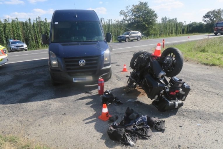 Dodávka odbočující vlevo srazila motorkáře. Ten vyletěl do vzduchu a spadl na silnici