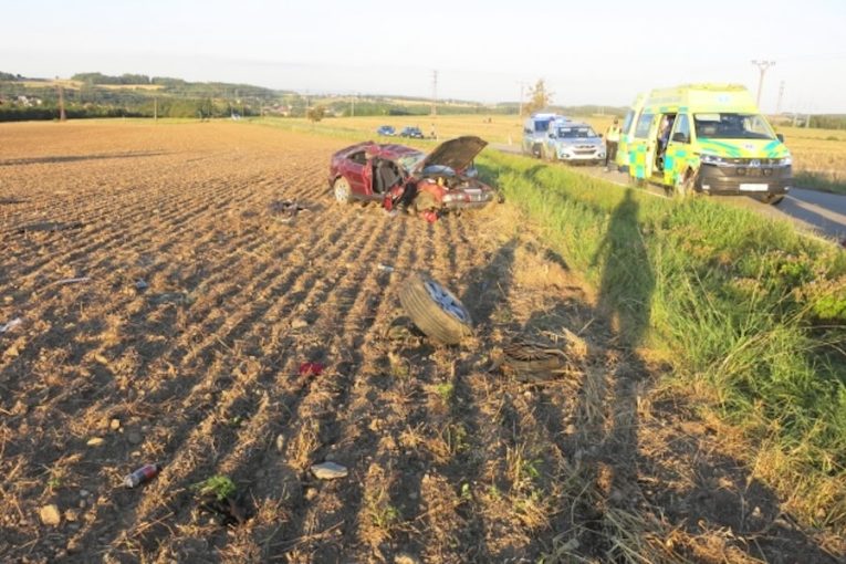 Začínající řidička (18) přetočila auto několikrát přes střechu. Pro jejího spolujezdce (19) letěl vrtulník
