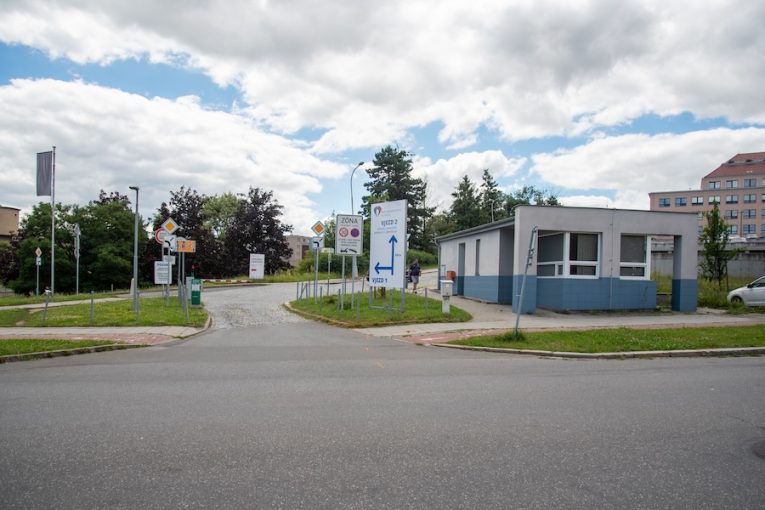 Vjezd do olomoucké fakultky Hněvotínská 1 se bude dva měsíce opravovat. Přibude brána i parkovací stání