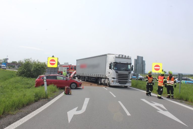 Na výjezdu z dálnice D35 u Litovle se srazil osobák s kamionem