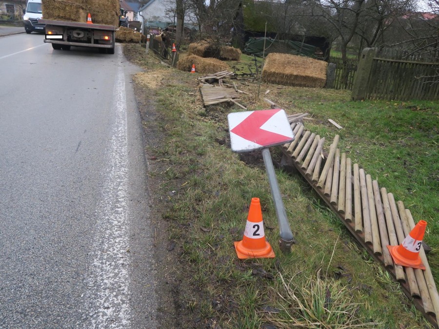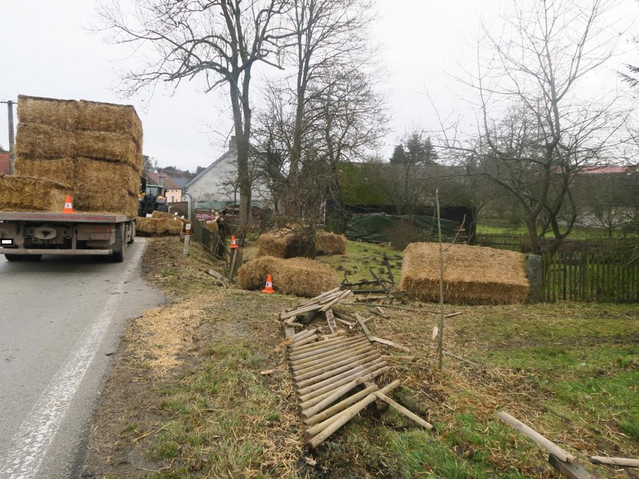 Balíky slámy skončily mimo silnici a tam zdemolovaly plot a elektrický rozvaděč. Při nehodě nebyl naštěstí nikdo zraněn. Škoda byla vyčíslena na 150 tisíc korun.