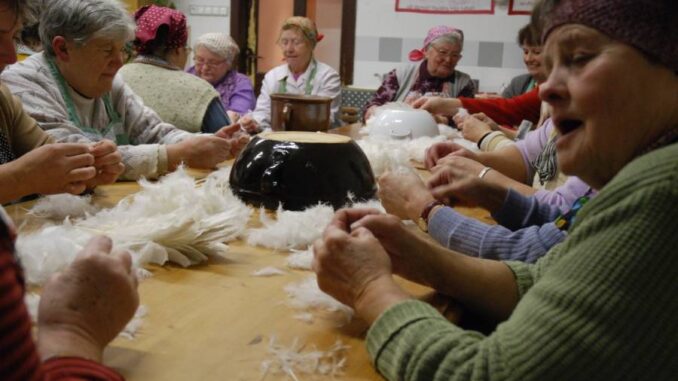 Peří z hus se dříve shromažďovalo doma po celý rok. Už od mládí se housata podškubávala a z jejich hrudníku se trhala vyvinutá brka.