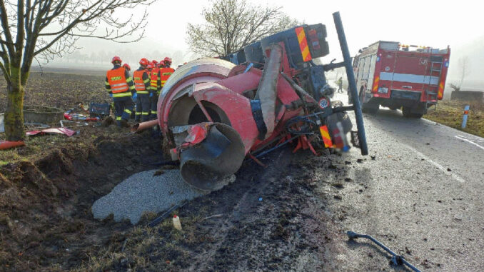 BRNO-VENKOV – Tragická dopravní nehoda nákladního auta se stala ve čtvrtek krátce po desáté hodině ráno silnici mezi Tvarožnou a Blažovicemi na Brněnsku. Hasiči museli vyprostit řidiče z kabiny převráceného domíchávače. Silnice zůstala neprůjezdná v obou směrech.