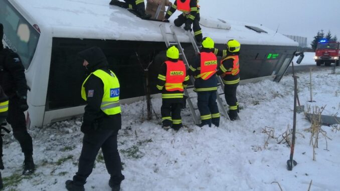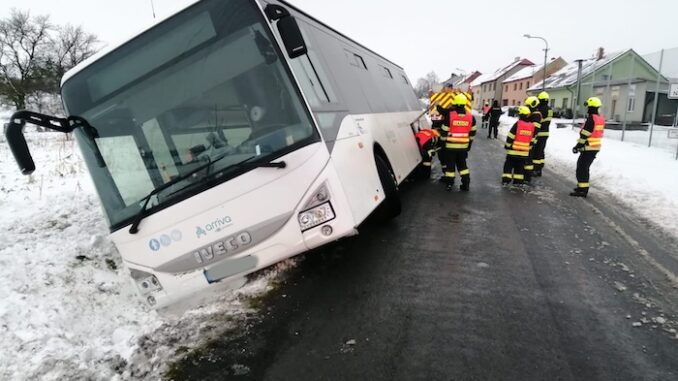 PŘEROVSKO – Víkendová sněhová nadílka způsobila potíže v dopravě. Hasiči po celém kraji vyjížděli během víkendu k mnoha nehodám, které se staly v souvislosti se sněhem. Dnes ráno museli řešit na Přerovsku situaci, kdy linkový autobus sjel do příkopu a nebylo možné otevřít dveře.