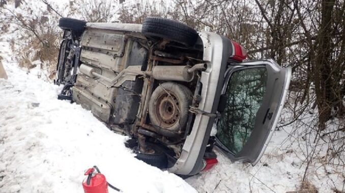 KROMĚŘÍŽSKO – Zledovatělá vozovka dnes dopoledne potrápila řidičku u Rajnochovic na Kroměřížsku. V lokalitě Pod Sochovou sjela s autem ze silnice do příkopu a skončila s vozem převráceným na boku.