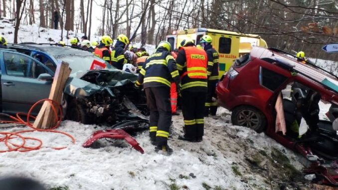 CHRUDIMSKO – Oznámení o dopravní nehodě v obci Lukavice dostali hasiči v sobotu před osmou hodinou ráno. V autě zůstala zaklíněná těžce zraněná osoba a i dalších šest skončilo se zraněním.
