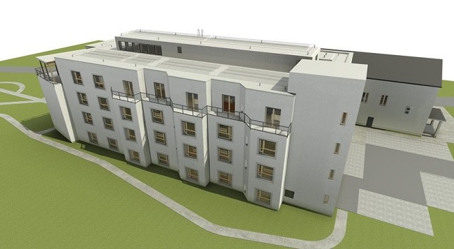 Bývalý chlapecký internát projde rekonstrukcí a s novostavbou se propojí krčkem. Vzniknou tu například skladové prostory, umývárny a šatny pro personál či provoz kuchyně včetně jídelny pro zaměstnance.