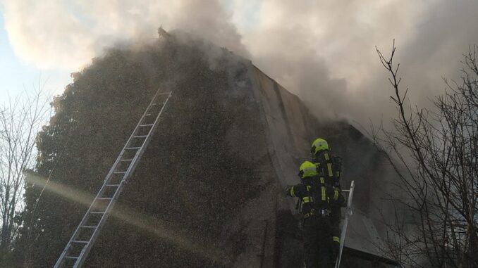 Požár zasáhl hlavně horní část objektu včetně střechy. Tu hasiči rozebírají a dohašují skrytá ohniska. „Lze předpokládat, že na místě zásahu budou pracovat celé dopoledne. Příčina vzniku požáru a výše škody je nyní v šetření vyšetřovatele hasičů,“ dodala mluvčí.