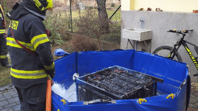 K požáru v Brně-Slatině vyslalo operační středisko v úterý ráno tři hasičské jednotky. V suterénu rodinného domu hořel bateriový vozík související s fotovoltaickým zařízením. Při příjezdu jednotek se v domě již nikdo nenacházel. Podle mluvčího hasičů Jaroslava Mikošky si velitel zásahu vyžádal na místo plynový hasicí automobil a pomocí přenosných hasicích přístrojů a jednoho proudu oxidu uhličitého se požár podařilo dostat pod kontrolu. Průběžně probíhalo odvětrávání domu, kontrola požářiště termo-kamerou a měření nebezpečných látek. Hasiči odpojili vozík s bateriemi od systému, aby bylo možné jej dostat ze suterénu před dům a umístili ho do vodou naplněné skládací nádrže. „Před desátou hodinou jsme činnost v místě zásahu ukončili. Ve večerních hodinách se vrátila naše posádka zkontrolovat stav baterií. Příslušníci z chemické laboratoře na místě odebrali vzorky použité hasební vody a vody v nádrži s bateriemi a odešlou je k další analýze. Podle našeho vyšetřovatele se škoda předběžně odhaduje na 300 tisíc korun. Zásahem jednotek se podařilo uchránit majetek za 5 milionů korun. Příčinou vzniku požáru se dále zabýváme,“ doplnil Mikoška. Výjezd se obešel bez zranění.