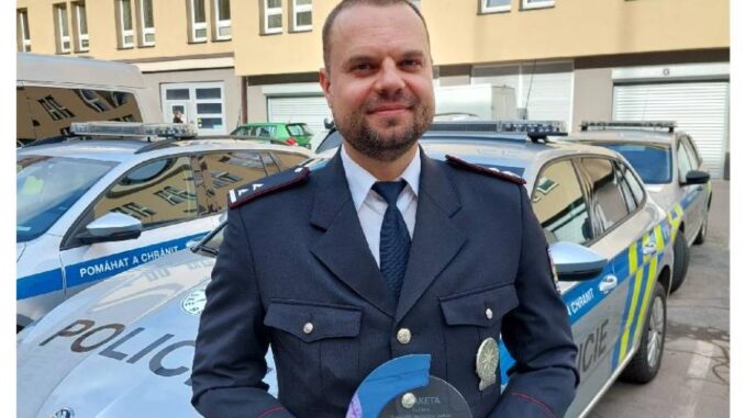 Policista Vojtěch Martínek převzal ocenění. Foto: Policie ČR