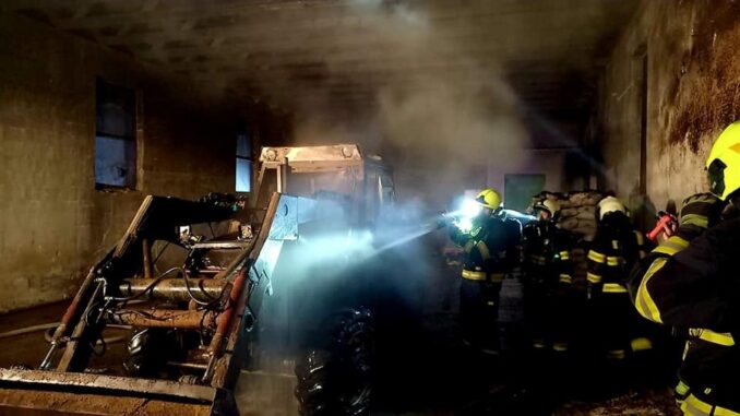 JINDŘICHOHRADECKO – Hasiči na pomezí Jihočeského kraje a Kraje Vysočina ve středu večer zasahovali u požáru traktoru s předním nakladačem. Traktor začal hořet ve stodole, ta nakonec naštěstí požárem zasažena nebyla. Škoda je vyčíslena na několik desítek tisíc.