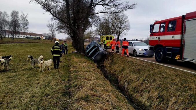 STRAKONICKO – Jihočeští hasiči zasahovali o víkendu u ne úplně běžné dopravní nehody u Bělčic na Strakonicku. Řidička dodávky skončila s automobilem v příkopu. Žena ve vozidle převážela čtrnáct nijak nezajištěných psů. Ti se rozutekli po okolí. Jeden z nich utrpěl zranění a následně bohužel zemřel.