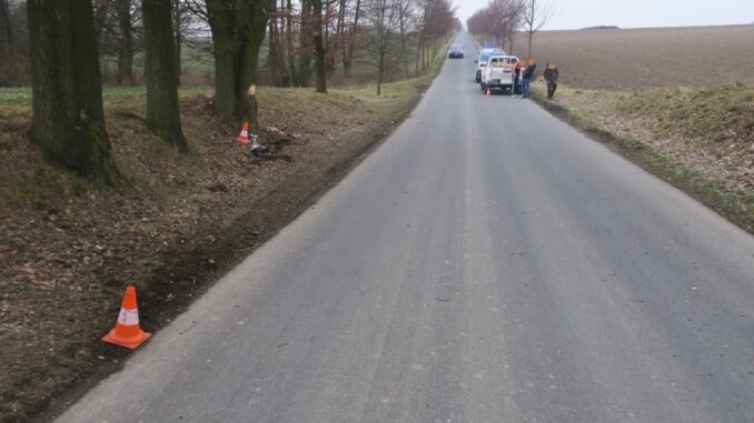 V momentě, kdy se chtěl autu vyhnout, strhnul řízení vpravo a vyjel mimo silnici. Došlo ke smyku a řidič levou částí vozu narazil do kmene stromu. „Dosud neustanovený řidič druhého vozidla