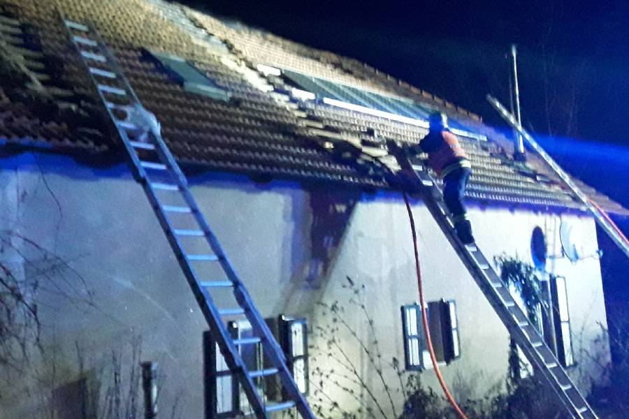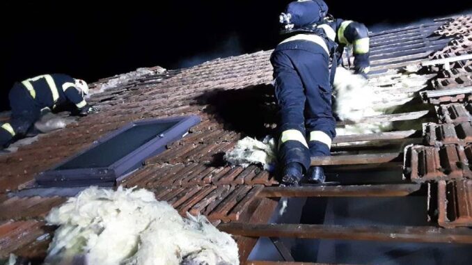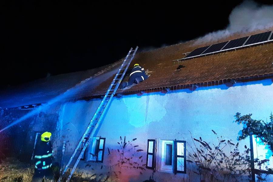 Požár zachvátil střechu rodinného domu na Pelhřimovsku. Při zásahu se zranil hasič