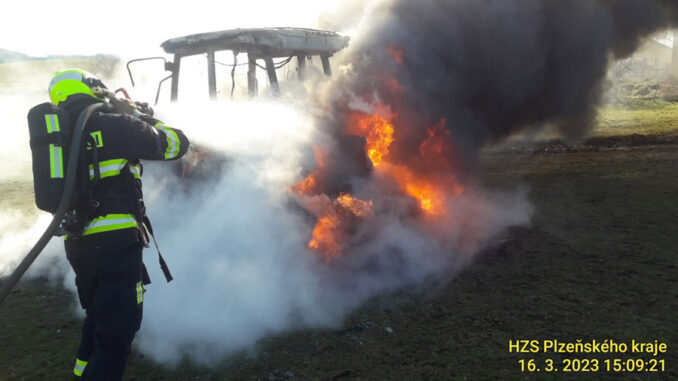 Ve Frymburku na Klatovsku se vzňal traktor. „Požár traktoru je v plném rozsahu. Výše škody a příčina jsou momentálně v šetření,“ informoval mluvčí hasičů Petr Poncar.