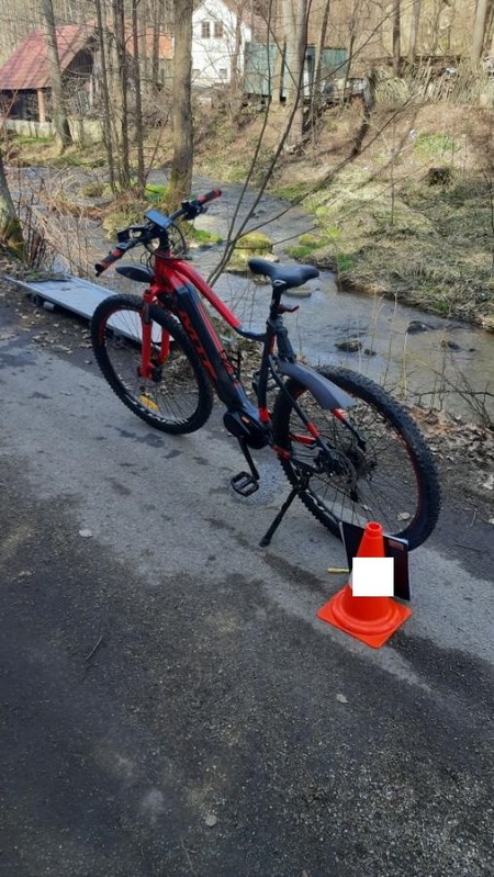 Cyklista na elektrokole havaroval do potoka (zdroj Policie ČR)