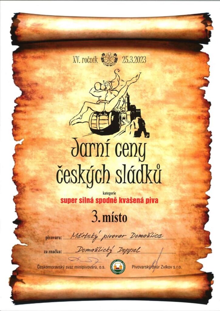 Ze sedmi dovezených vzorků se do finále dostala hned tři domažlická piva (Domažlická 10, novinka NEBULes – NEIPA a Domažlický Doppel Bock). „Do soutěže jsme přihlásili sedm našich piv v šesti kategoriích,“ uvedla Jana Müllerová, vrchní sládek Městského pivovaru Domažlice. „V konkurenci 709 vzorků a 149 minipivovarů to považuji za obrovský úspěch. Ještě větším úspěchem je to, že Domažlický Doppel bylo minulý rok na této soutěži čtvrté a letos jsme se konečně dostali na bednu, vyhráli 3.místo a odvezli si ze Zvíkova diplom. Tato vzrůstající tendence bude doufám pokračovat i příští rok,“ dodala Müllerová. „Máme z toho velkou radost, že se naše poctivá a s láskou odvedená práce vyplácí. Je to pro nás obrovská motivace a zároveň závazek vůči vám, našim věrným zákazníkům, dělat vše poctivě i nadále,“ uzavřela Müllerová.
