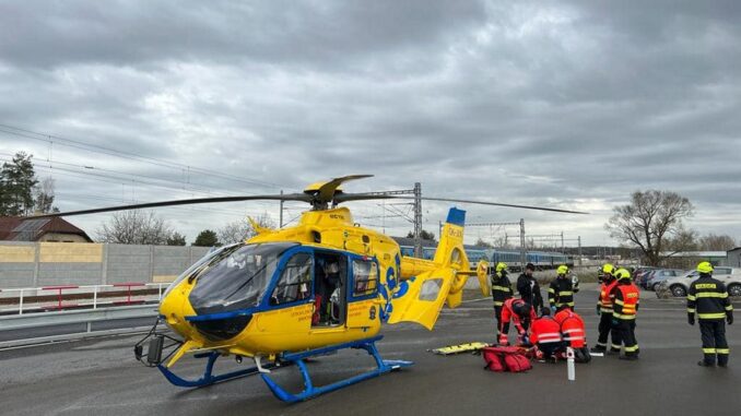 Vlak na Táborsku srazil ženu. Na místo letěl vrtulník (zdroj ZZS Jihočeského kraje)