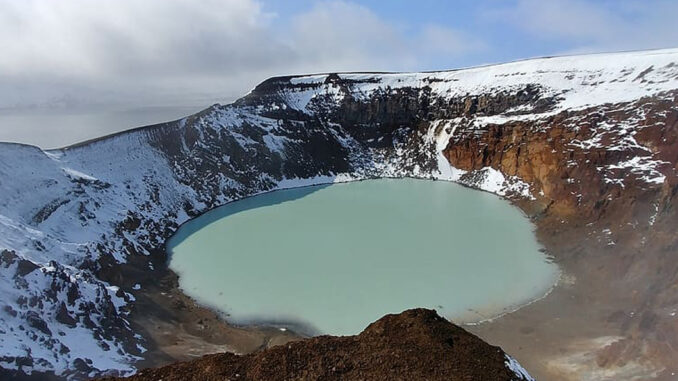 Jezero kráteru Askja - Island. Zdroj: www.pxfuel.com