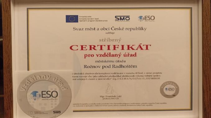 ROŽNOV POD RADHOŠTĚM – Svaz měst a obcí České republiky udělil Městskému úřadu Rožnov pod Radhoštěm stříbrné ocenění v akci Vzdělaný úřad.