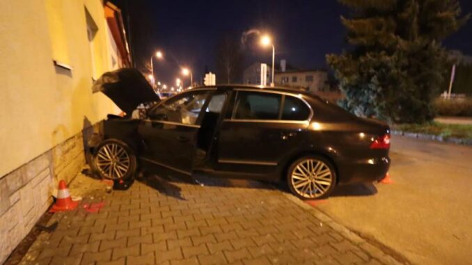 Řidič auta Škoda Superb jel z České Třebové na Libchavy. Po projetí světelné křižovatky pravděpodobně nezvládl řízení. Po konečném nárazu do domu a zdemolování přední části auta zraněný utekl. „Strážníci muže následně zadrželi a předali ho orlickoústeckým policistům. Dechová zkouška vyšla pozitivně s hodnotou 2,11 promile alkoholu v dechu. Řidič byl převezen a ošetřen v orlickoústecké nemocnici,“ popsala mluvčí policie Andrea Muzikantová.