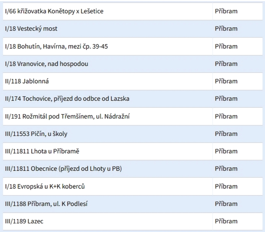 STŘEDOČESKÝ KRAJ – Pokud nechcete riskovat nehodu ani pokutu, je nejlepší dodržovat dopravní předpisy a správně přizpůsobit rychlost. Chcete-li ale vědět, kde budou policisté stát a měřit, přinášíme přehledný, abecední seznam míst podle okresů.